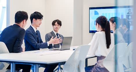 社員一人ひとりの成長を支援するため、 幅広い分野の研修プログラムを用意しています。 ビジネススキル、専門スキル、 リーダーシップなど、自身のキャリアプランや 伸ばしたいスキルに合わせて、自由に研修を選択し、受講することができます。