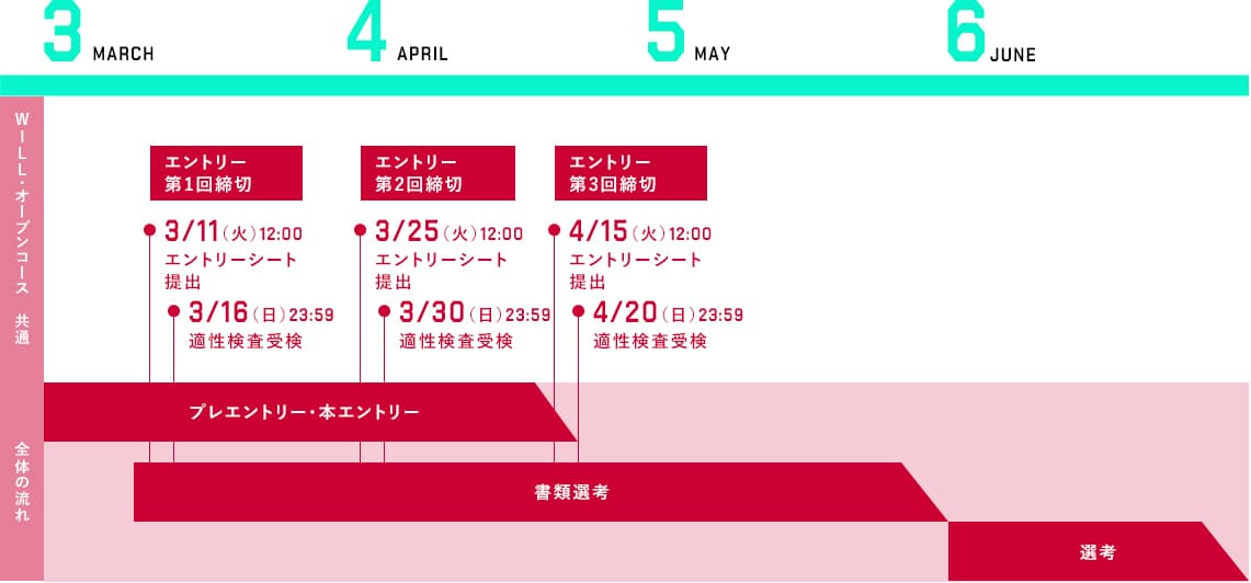 ※ポスト確約型WILLコースのみ第3回締切の応募受付を実施しない可能性があります。