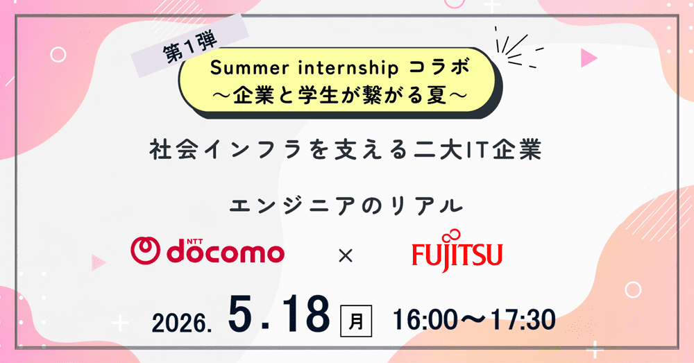 <28卒>【ウェビナー】第1弾 富士通グループ×NTTドコモ Summer Internship コラボ ~企業と学生が繋がる夏~