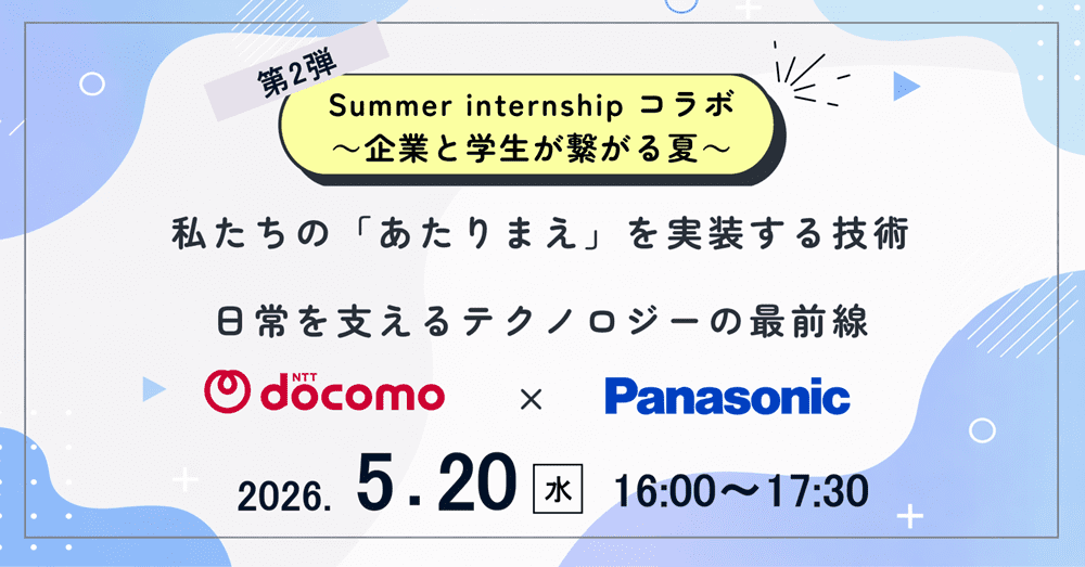 <28卒>【ウェビナー】第2弾 パナソニック×NTTドコモ Summer Internship コラボ ~企業と学生が繋がる夏~