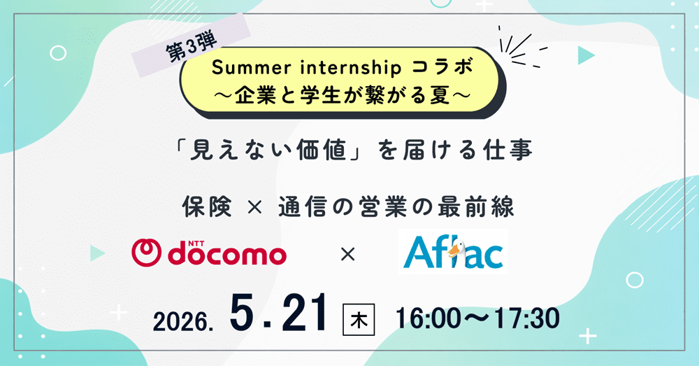 <28卒>【ウェビナー】第3弾 アフラック生命保険×NTTドコモ Summer Internship コラボ ~企業と学生が繋がる夏~